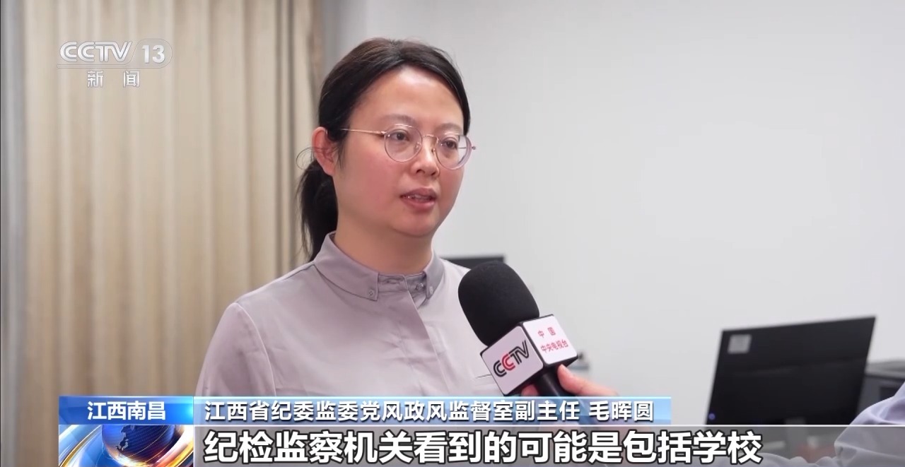 江西省纪委监委党风政风监视室副从任 毛晖圆:纪检监察机关看到的可能是包罗学校,还有教育部分、市场监管部分,他们正在鞭策整治过程傍边义务的缺失问题、以至还会发觉傍边存正在的一些好处勾连、的问题。